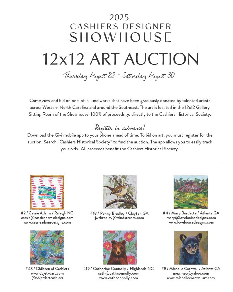 Artist applications for the 2026 Cashiers Designer Showhouse will be opening soon.